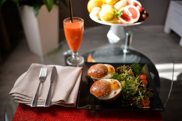 При отеле разместился ресторан, где можно вкусно покушать.