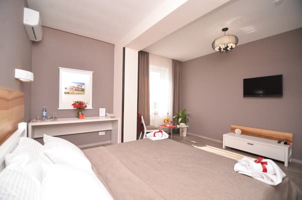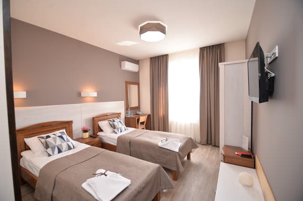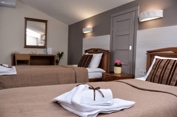 26 номеров отеля меблированы и обустроены техникой, есть Интернет и телефон.