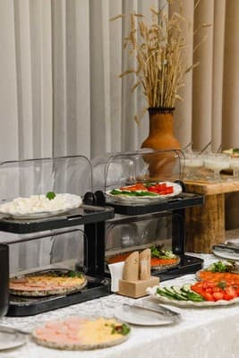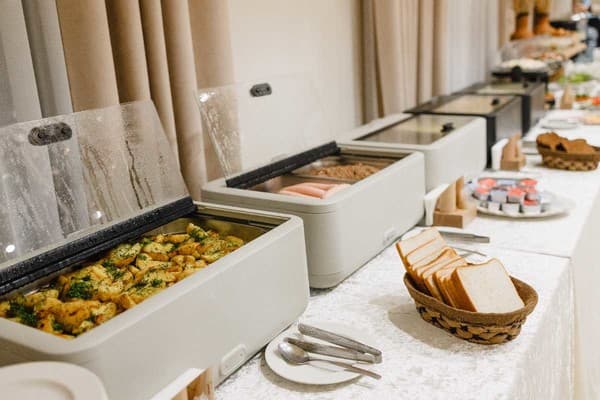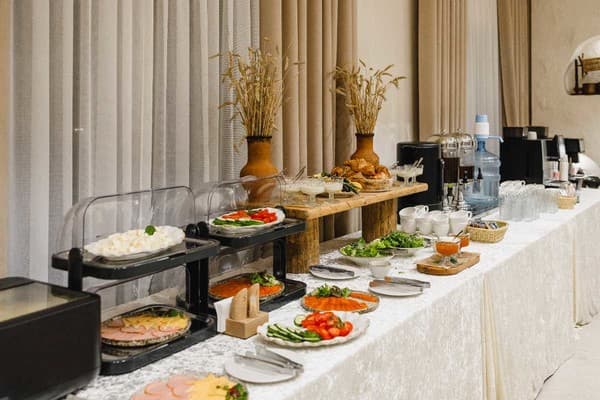 Завтрак и остальные приемы пищи проходят в ресторане комплекса "София", а в летний период можно наслаждаться трапезой в беседках в саду. Банкетный и конференц-залы также в распоряжении постояльцев.